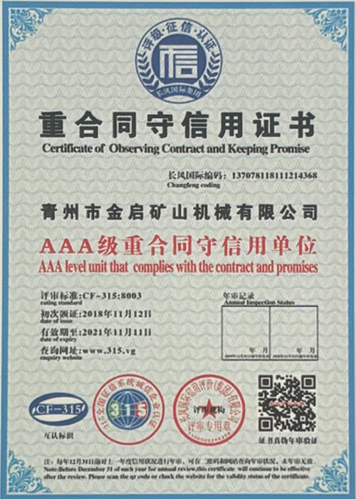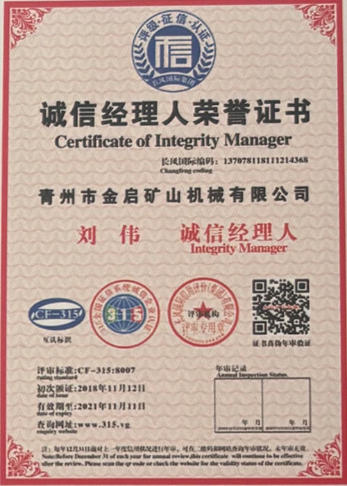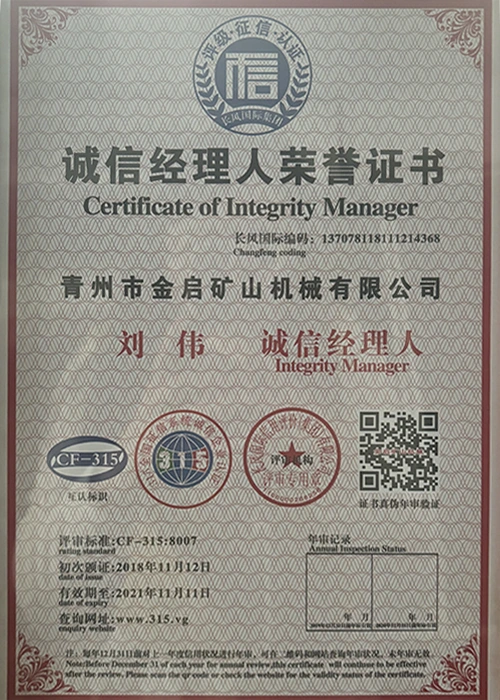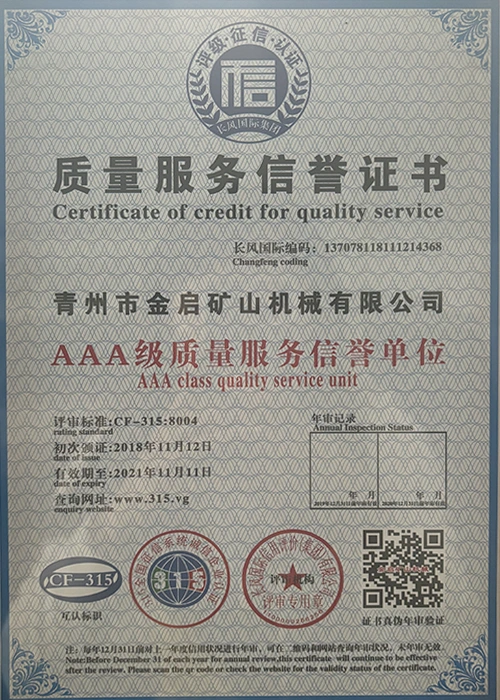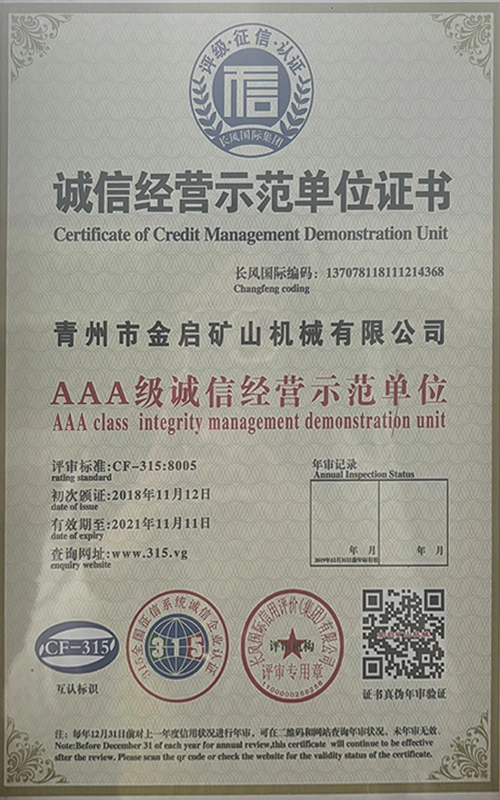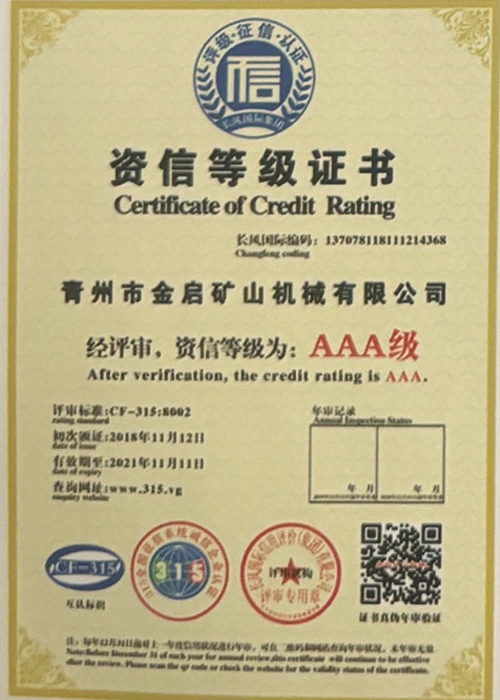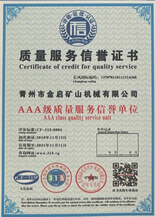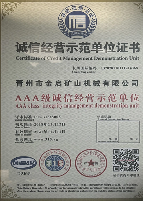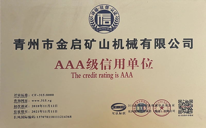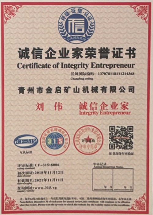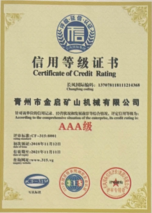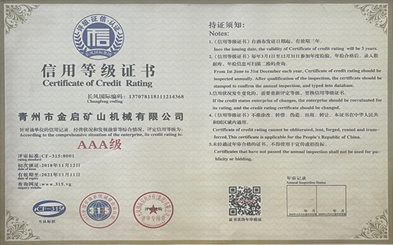 Med mange års dybdeerfaring i bransjen, avhengig av streng kvalitetskontroll og kontinuerlig teknologisk innovasjon, har selskapet oppnådd en rekke autoritative kvalifikasjoner, sertifiseringer og patentsertifikater, inkludert sertifisering av ISO-kvalitetsstyringssystem, sertifisering for gruveproduktsikkerhet, samt flere oppfinnelsespatenter og bruksmodellpatenter for optimalisering av utstyrsstruktur og energibesparende teknologi for oppgradering av produksjon og energisparende teknologi.